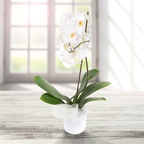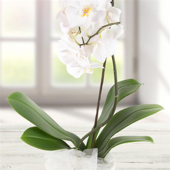 A graceful long lasting phalaenopsis orchid presented in a stylish CONTAINER.